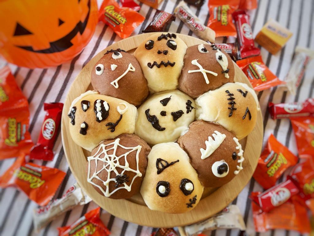 因應萬聖節的到來,用黑白巧克力與保鮮袋擠出的萬聖節奶油小餐包。